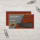 Design apresenta um elaborado design de tijolo de cimento. À esquerda está o velho muro de cimento; Aqui está o seu nome prestigioso e o seu título de trabalho ao lado de uma opção de slogan para anunciar os seus serviços. Logo abaixo está um logotipo de construção de uma casa de ouro para você usar. Na parede direita está uma parede de tijolos recém-fixada com uma área exposta perto da base, o nome da empresa e os detalhes de contato podem ser encontrados aqui. No verso, num cobrir castanho escuro, os pormenores encontram-se na parede direita, com o logótipo dourado no topo, seguido do nome comercial, dos seus contatos e de um slogan. Este cartão seria sobre construção de excelentes e temas de construção. #handyman #constructing #buildingcontratante #homerepair #contratante