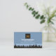 Uma camada azul é acentuada por uma paisagem criativa de horizonte de horizonte urbano perto da base do cartão.