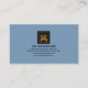 No verso, em cobrir azul, o logotipo ouro está no topo, seguido do seu prestígio nome, dos seus contatos e de uma legenda de slogan para divulgar a sua empresa.