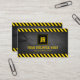 Cartões de visitas russos com fundo rústico, construção com temas de listras amarelas e negras, e um modelo profissional fácil de personalizar.