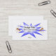 Cartão de visita com as minhas personagens engraçadas de mosquitos voadores com um símbolo azul de 'explosão'.