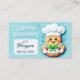 Este adorável cartão de visita de decoração de biscoitos apresenta uma personagem de pão de gengibre fofa com um chapéu de chef, perfeito para qualquer pessoa que ofereça serviços de decoração de biscoitos. Com um design divertido e informações de contato personalizáveis, este cartão não deixa de adoçar a apresentação da sua empresa.