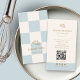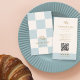Cartão De Visita Cool Blue Checkered Cafe Croissant QR Bakery