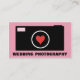 Cartões de visitas cor-de-rosa ultra MODERNOS e CORAJOSOS do fotógrafo do casamento. Estes cartões de visitas são grandes para profissionais independentes da empresa de pequeno porte ou o uso pessoal. Cartões de visitas cor-de-rosa CORAJOSOS da fotografia do casamento da câmera