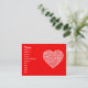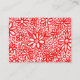 Um cartão de visita com um design floral atraente e fechado desenhado de vermelho em branco. O verso mostra um detalhe do desenho das flores.