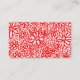 Um cartão de visita com um design floral atraente, puxado de vermelho em branco. O verso mostra um detalhe do desenho das flores.