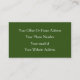 Impresso com legal fundo verde florestal e texto branco, isso é perfeito para aqueles que estão procurando cartões de visitas legal. Sinta-se livre para mudar os textos e adicionar seus próprios detalhes em ambos os lados do cartão e personalize como quiser!