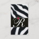 Design elegante, elegante, colorido e único, com uma antiga camisa grega ; padrão preto branco de pele de zebra selvagem listrada com rosas brilhantes, fuchsia, ametista roxa.Você pode mover gemstone para personalizar com suas iniciais e seu próprio texto.Este cartão artístico e legal é perfeito para cabeleireiro, desenhista de fantasia, motônica, maquiador, figuras, figurinos designers de vestuário, proprietários de butique, cosméticos, cosmetologistas, perfumes, compras pessoais, consultores de armários e outras profissões criativas.