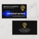 No escuro da noite, um pulso elétrico azul impressionante atravessa o espaço e acende seu nome de empresa perto da base da placa. Logo abaixo está o contato com o logotipo da lâmpada dourada que você pode usar no topo. À esquerda deste logotipo está seu nome prestigioso e o título do cargo.