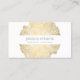Um motif faux gold tree ring é combinado com seu nome ou nome comercial para uma estética elegante no modelo de cartão de negócios deste cosmetólogo. A natureza orgânica do anel de árvore cria uma intrigante e inesperada peça de arte para ajudar a separar sua marca. Este cartão de visita de dois lados permite muito espaço para suas informações na parte traseira da placa. Arte e design © 1201AM CREATIVE.