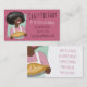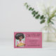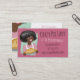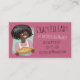 Mulher do afro-americano com o cabelo impressionante, vestindo um avental e guardarando uma torta fresco-cozida neste cartão de visita para uma padaria da torta ou um negócio home do cozimento. Escolha sua própria cor do fundo.