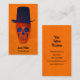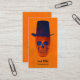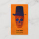 Este crânio com uma tatuagem de chapéu superior Compra cartões de visitas verticais profissionais apresenta uma textura antiga gótica, queimada, design azul laranja. Imagem copyright Marg Seregelyi Fotografia.