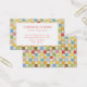 Apresente seu próprio negócio de colagem ou costura em estilo com este cartão de visita CRAZY QUILT 3.5"x2".* Mude facilmente "KATHERINE QUILTER" e todo o outro texto (slogan, site, email, telefone, cidade/estado) escolhendo "Personalizar este modelo" e digitando em suas próprias informações em vez do que está lá agora. Altere a fonte, o tamanho da fonte e/ou a cor com Editar Design e Editar Texto. Adicione ou exclua uma linha, faça qualquer coisa que você quiser que ela seja sua. * Este design de colcha é um detalhe digitalmente multiplicado do meu desenho colorido original de um colchete colorido. * Outros cartões de visitas e produtos correspondentes estão disponíveis na categoria QUILT ART do meu compro. ** Se você quiser transferir este design para outro tipo de produto, forma ou tamanho, verifique primeiro meu compro para ver se já fiz um, porque eu vou ter que mexer com ele para fazer o ajustado design certo e ele vai salvar o seu incômodo. Às vezes designs transferem bem, às vezes não. Apenas para sua informação. Se precisar de ajuda ou tiver uma pergunta, por favor, envie-me uma mensagem.