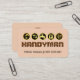 An all light brown cover has an array of gold handyman tools at the top of the card. The tools can represent some of the services that you offer e.g. the drill-measuring tape can represent Carpentry, Home repairs, the brush for painting works, the faucet for plumbing repairs, the washing machine for equipment repair and the tress for landscaping-gardening. After this comes your business name "HANDYMAN" (which is bolted in with screws) which you can change alongside the contact details.