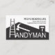 O cobrir apresenta uma design de telhado de cinza criativa que incorpora uma escada que atua como a letra "H" da palavra "Handyman". No canto superior direito, as mentiras são o seu nome prestigioso e os detalhes do contato. No verso, em um cobrir branco, o logotipo da paisagem dourada que você pode usar está no topo. Seguem-se o seu nome prestigiado, os contatos e uma opção de slogan para divulgar seus serviços. Um cartão de excelente para o trabalhador, empreiteiros gerais, pintores a serem usados.