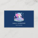 Cartões de visitas com uma imagem de um polvo giro e giro com uma flor na cabeça. Grandes olhos brilhantes e um rosto amigável.