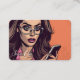 Cartão De Visita Crie sua própria garota retrô em óculos no telefon