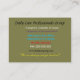 Um cartão de visita deve refletir sua personalidade de forma profissional. Você se importa! Deixe esse cartão de visita único de atendimento fazer com que sua primeira impressão seja um sucesso. Personalize com sua própria escolha de fonte. Este cartão pode ser utilizado para qualquer introdução profissional ou pessoal. Dê uma olhada em todas as muitas opções de papel para cartões que você oferece. Cartão perfeito para babás, cuidados de saúde no domicílio, lares de enfermagem e prestadores de cuidados a idosos ou deficientes.
