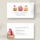 Cartão de visita simples e fofo, com a ilustração de vários cupcakes com nata e bagas de manteiga. Perfeito para cozinheiros, donos de padarias e catadores.