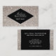 Uma imagem de fundo com brilho prateado fornece um pano de fundo glamouroso para este modelo de cartão de negócios de belos temas. Seu nome ou nome comercial é elegantemente estirado em uma placa de nome cortada em prata para um logotipo clássico. Motif na moda design para salões de beleza, designers de unhas, maquiadores, cosmetólogos, estilistas de moda, boutiques e muito mais. © 1201AM CREATIVE