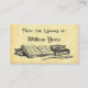 Um cartão de visita do estilo da placa do livro que lê "Da Biblioteca de" em letras deco e espaço para o seu nome em letras antigas em inglês na frente com livros antigos e uma retração escrevendo na frente e nas letras vintage na parte de trás, em um fundo falso de pergaminho. Uma simples pilha de livros antigos num estilo antigo de arte gravada decora o fim, tudo em preto clássico e branco. Clique em Personalizar para alterar as fontes, o tamanho da placa, as cores de fundo e muito mais, até salvar o design para mais tarde.