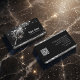 Um design de cartão de visita preto premium e elegante para um serviço de limpeza, apresentando uma ilustração de um espanador de penas prateado brilhante com efeitos de glitter espalhados. O layout inclui uma frente limpa e profissional com brilhos deslumbrantes e um verso bem organizado com detalhes de contato, ícones e código QR. Perfeito para empresas de limpeza de casas modernas que buscam uma identidade de marca estilosa e atraente. Acabamento de alta qualidade, elegante e luxuoso. #SparkleAndShine #ServiçoDeLimpeza #ServiçoDeEmpregadaDoméstica