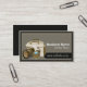 Este cartão de visita em fundos khaki e pretos da cor. Com um saco da câmera e uma câmera para o fotógrafo do viagem ou da aventura. Adicione seus próprios detalhes do contato.