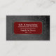 O design 2011 do Pam de Copyright. Represente-se e sua empresa de advocacia com este cartão de visita vermelho & preto profissional, à moda da lei para um advogado, um juiz, um advogado, um secretário legal, um notário, um advogado, um procurador, e todos serviços jurídicos restantes. Este modelo de cartão de negócios da lei pode igualmente ser personalizado para encontrar outros ocupações e negócios profissionais, tais como contadores, guarda-livros, doutores, e mais. A tentativa que personaliza este design clicando em "personaliza-o" para mudar a cor do fundo, a pia batismal, e a cor e o tamanho de texto.