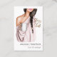Cartões de biz de salão de beleza brilhante com um café bebendo da moça-chique rosa.