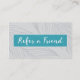 Cartão de visita da referência do dentista. Cartão de visita feito sob encomenda da referência com uma promoção da referência para recompensar seus clientes para consultar seus amigos. O cartão tem um design e um esquema de cores artísticos modernos. Excelente para introduzir no mercado seu escritório do dentista e para aumentar sua lista do cliente. Entre em suas próprias promoção, negações e informações da empresa. Aperfeiçoe para o escritório do orthodontist, o escritório do implante dental, cuidados dentários pediatras, ou consultório particular.