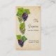 Uma vinha com os quatro conjuntos de uvas para vinho alinha ao longo do lado esquerdo deste cartão de visita. A vinha serpenteia atrás das uvas contra um fundo do pergaminho. Um grande cartão para um bar de vinho, a loja de vinho, o vinhedo ou um vintner. Disponível com produtos de harmonização.