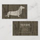 Um sinal divertido de cartão de visita doxie com um olhar de madeira na frente e atrás. cartão de visita de excelente para proprietários e criadores de Dachshund.