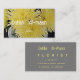 O design do cartão de visita apresenta belas dalias amarelas elegantemente exibidas em um recipiente de vidro. Arte original de Alma Wad.