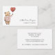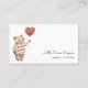Um cartão de visita de puericultura meticuloso, com um pequeno ursinho de aquarela com um balão de coração. Estilo bonito e caprichoso. Disponível em impressão, como download digital ou ambos.