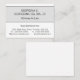 Este simples, simples e básico design de cartão de visita apresenta um primeiro e sobrenome, um nome de empresa ou de empresa, um título de função de cargo e informações de contato que são personalizáveis. Cartões de visitas como estes podem ser usados por um profissional, como um consultor, um advogado ou um advogado.