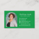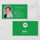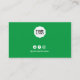 Cartão de visita de agente imobiliário verde com ícones para informações de contato e perfis de mídia social. Adicione facilmente seu logotipo e sua foto para uma aparência personalizada.