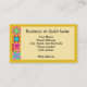 Faça uma impressão com este cartão de visita para seu negócio de colcha, compro ou culpa. Coordenar com um cartão de visita correspondente. Esta cartão de visita apresenta um design de bloco de colcha baseado na arte original de Phyllis Dobbs. O design apresenta blocos de retalhos favoritos e blocos únicos criados em cores dinâmicas e vibrantes num fundo amarelo ensolarado. As cores são cor-de-rosa, laranja, turquesa, amarela, vermelha e verde. Totalmente personalizável.