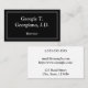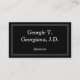 Esse cartão de visita tradicional e mínimo design apresenta um fundo preto e uma borda dupla com uma linha tracejada no meio. Pode ser utilizado por um advogado, advogado, advogado ou advogado. O nome, profissão e contatos podem ser personalizados.
