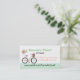 cartão de visita feminino Bonito feito em branco com uma faixa verde na parte inferior e gráficos de uma bicicleta verde e pêssego com balões e flores. Personalize o texto para atender às suas necessidades. Faz um cartão de mamãe bonito também!