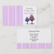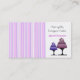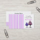 Um cartão de visita moderno, mas elegante, para um negócio de assar, decoração de bolos, sobremesas ou restauração. Sombras de listras roxas e mauvas e bolos de designer acenam este design. Personalize com todas as suas informações.