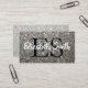 Estes cartões de visitas elegantes apresentam uma reluzente prateada. Seu nome aparece na moda tipografia de script manuscrito. Também há espaço para incluir suas informações nas mídias sociais nas costas.