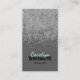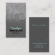 Cartão de visita de cinza de de moças, com gráficos de brilho prateado, na frente. Personalize o texto verde preto e menta para atender às necessidades de sua empresa. Um excelente de cartão de destaque encantador para qualquer tipo de ocupação ou negócio.