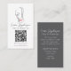 design de cartão de visita para cabeleireiro e maquiador ou outros negócios na indústria cosmética. Chic, elegante, estilo minimalista, código qr incluído. Abstrato facial da mulher, incluindo. Por favor, personalize frente e trás.