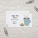 Um cartão único com fundo branco, uma caneca azul alta de café quente e um muffin de limão ao lado. Personalize com todas as informações de sua empresa conforme desejar.