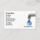 Cartões de visitas com vazamento de água na frente. Personalize este design de cartão de visita de excelente para um serviço de canalização, empresa de água ou serviço de filtragem de água.
