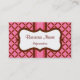 Um padrão rosa de framboesa e marrom de chocolate decora este cartão de visita profissional. Personalize as informações neste cartão de visita para atender às suas necessidades, adicione ou exclua informações, altere o estilo da fonte, tamanho da fonte, etc.. O design é da arte original. Use este cartão de visita de na moda para um spa, salão, pequena empresa, decoração doméstica, design de interiores, cama e café da manhã, dentro, compro de café, planejador de eventos, cama e café da manhã, boutique, padaria, compro de café. creche, guarda de crianças, comidas gourmet, cosmetólogo, etc...