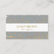 Cinza com manchas douradas cartão de visita elegante. Faixa branca na frente com fonte decorativa e elegante, no verso as informações pessoais estão prontas para fácil personalização