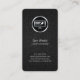Este design cartão de visita de desenvolvedor de conteúdo forte e elegante apresenta uma sutil textura preta escura escura em fundo. A parte superior da placa tem um ícone cromo de tamanho médio de um código de computador. Seu nome e título aparecem no meio, em letras brilhantes e fáceis de ler, enquanto seus detalhes de contato aparecem na parte inferior da placa em letras menores, mas limpas e legíveis. Perfeito para computadores, laptop, engenharia, técnica, ti, informação, temas de tecnologia da informação, mas pode ser usado para quase qualquer empresa ou indústria.