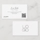 Cartão de visita preto e branco elegante, com aspecto profissional mínimo, com código QR. Este design cartão de visita é fácil de personalizar, basta adicionar seu próprio logotipo e código QR comercial. Crie e adicione seu próprio código QR exclusivo para direcionar facilmente clientes para seu site. É uma pesquisa profissional e sofisticada para gerentes de projetos, consultores, escritores e outros profissionais.