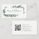 Cartão de visita de Código QR Floral Verde Elegante